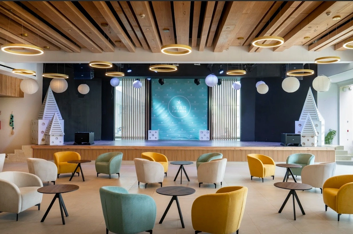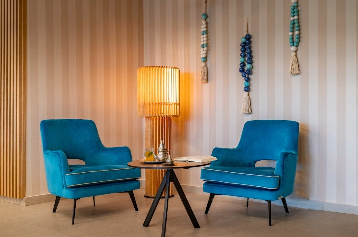 Aménagement des espaces d’accueil, création de l’ambiance lounge, agencement et ameublement des chambres et des suites, …